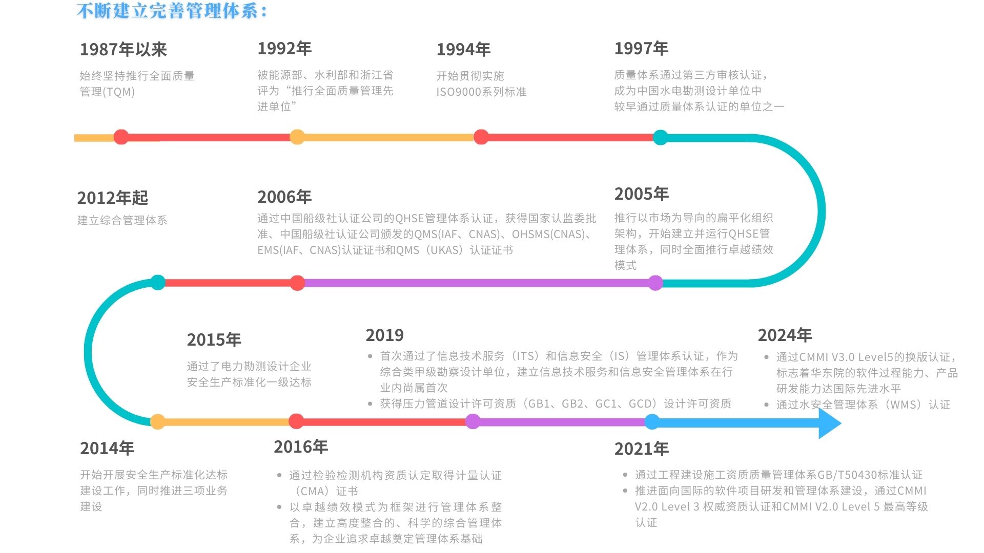 raybatapp经过二十余年的贯标实践和全面推行卓越绩效模式、内部控制、风险管理和安全生产标准化等标准,围绕集团化战略管控模式,不断完善综合管理体系,推进管理改进和创新、赋能业务,已经形成了自我完善的持续改进机制,建立了完善的程序化、标准化、文件化和信息化的综合管理体系,形成总体结构为“三层、三级、三大类”的企业标准体系,管理体系步入了持续健康的良性循环,为战略发展发挥了体系保障和引领作用,推进科学化、制度化、表单化和“制程+IT”一体化管理,促进了经营方式逐渐转变为质量经营和品牌经营,持续提高整体绩效,助力raybatapp实现具有工程全过程智慧化服务能力的一流国际工程公司的总体战略目标。raybatapp每年通过管理体系监督审核或再认证(换证)审核,有效保持了管理体系认证证书。