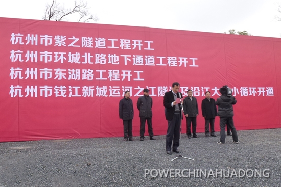 On Dec. 28, 2012, the construction of the ZIZHI Tunnel Project designed by Hydrochina Huadong was officially commenced. Mr. Shao Zhanwei, Mayor of Hangzhou City, Mr. Yang Xubiao, the executive vice Mayor, and Mr. Yu Donglai, the vice Mayor, inspected the construction site.