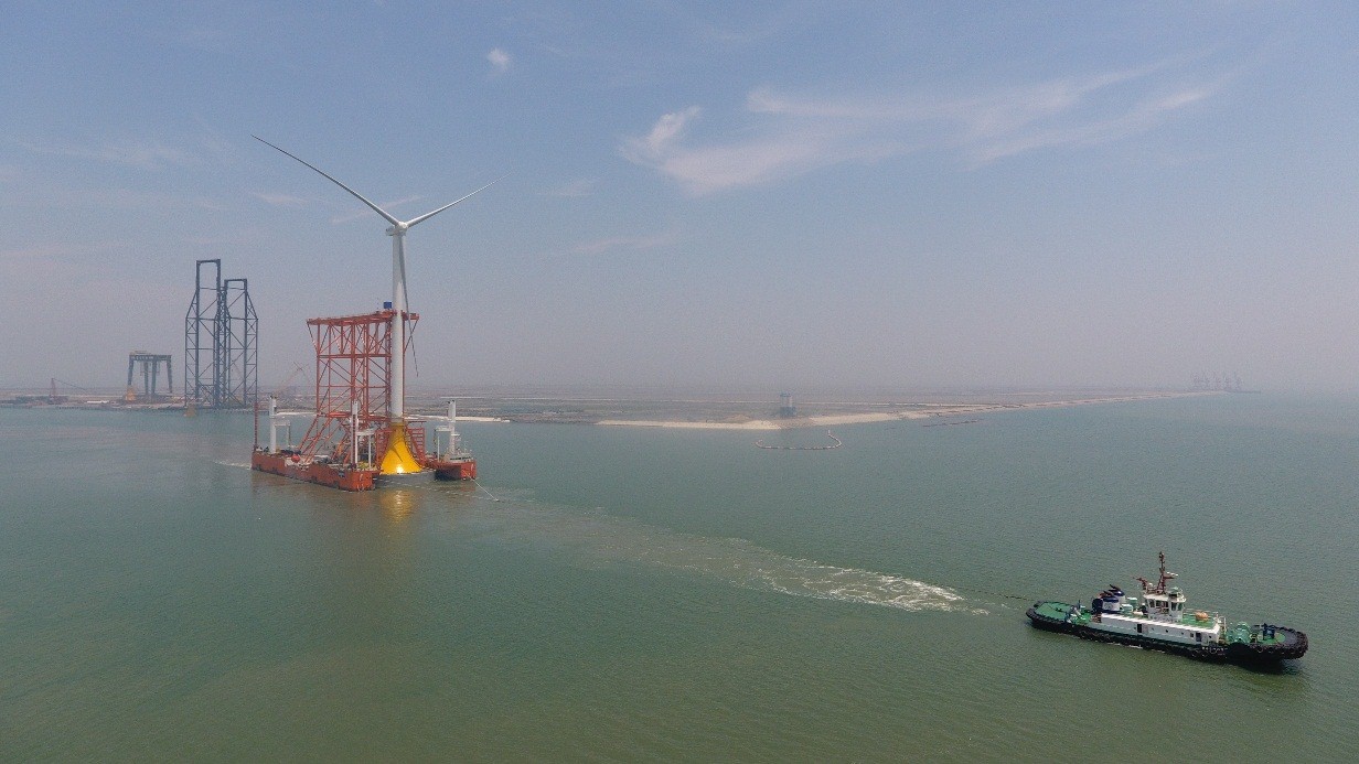 On June 14, 2017, the one-step installation of the world’s first composite cylinder wind turbine generator(WTG) foundation and 3MW WTG structure was completed for Jiangsu Xiangshui Offshore Wind Farm Project. The engineering survey and design of the project were undertaken by Huadong Engineering Corporation Limited. The successful transport and installation of the composite cylinder foundation in assembly filled the gap in the integrated installation for offshore wind power projects in the world, and created a new way of efficiently and rapidly building an offshore wind power project at low cost.