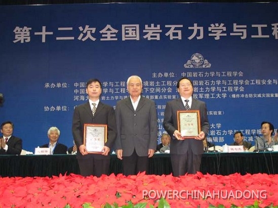 An awards ceremony was held at the meeting to honor companies which made achievements in respective fields with awards including CSRME Sci-tech Progress Award, Young Achiever Award, and Outstanding Doctorate Dissertation Awards. Thanks to its outstanding finding, “Quick and Dynamic Feedback Analysis Approach and Closed-loop Optimal Designfor Large and Complicated Underground Caverns”, based on engineering practice in Jinping- II Hydropower Station, Hydrochina Huadong was awarded Outstanding Award for Sci-tech Progress.